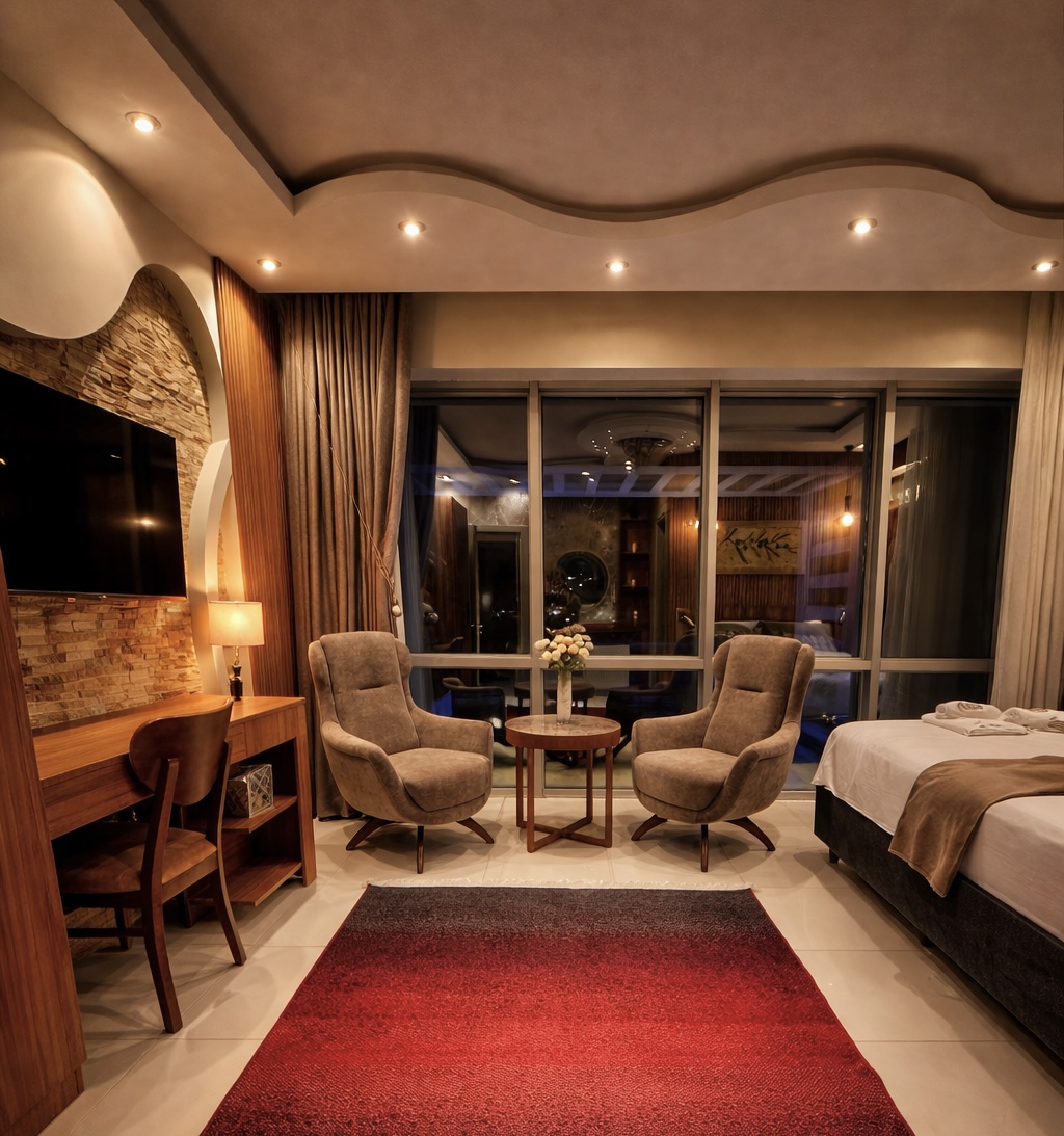 Modern tasarımı ve özenle hazırlanmış yaşam alanlarıyla misafirlerimize konforlu ve huzurlu bir konaklama deneyimi sunuyoruz. Kısa ve uzun süreli konaklamalar için sade, zarif ve keyifli bir atmosfer sizleri bekliyor.